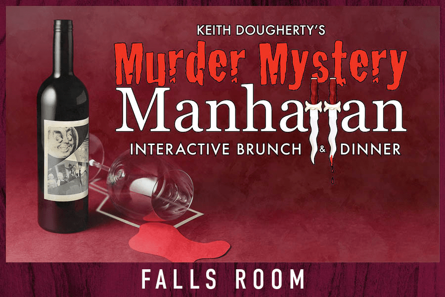 Tickets include a 3-course dinner, a complimentary glass of wine, and the Murder Mystery show! / 21+Menu.