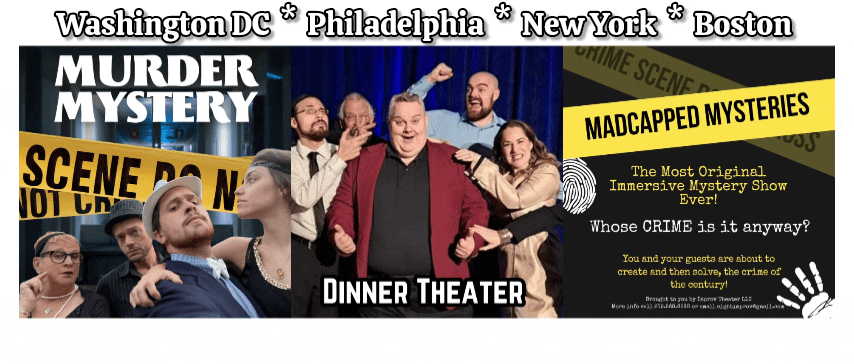 EMAIL US NOW to book your FREE consultation with one of our top all-pro detectives to plan your next, personally customized MURDER MYSTERY DINNER SHOW, immersive interactive CLUE PARTY for the ultimate cocktail party experience, or even our very own MADCAPPED MYSTERIES the most original murder mystery show EVER!!! We have shows/games for any budget, venue, or crowd size, including our new DIY murder mystery in a box kits based on our most popular scripts available for digital download worldwide!