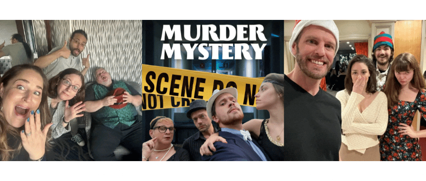 The buffet opens at 7pm. Shortly after our lead detective Frankie Horsham (played by Walt Frasier, as seen on Blue Bloods, Billions, Royal Pains, Letterman, HBO. MTV, etc) will announce the murder. Then everyone is deputized. You must interogate every suspect, collect clues and solve the crime.