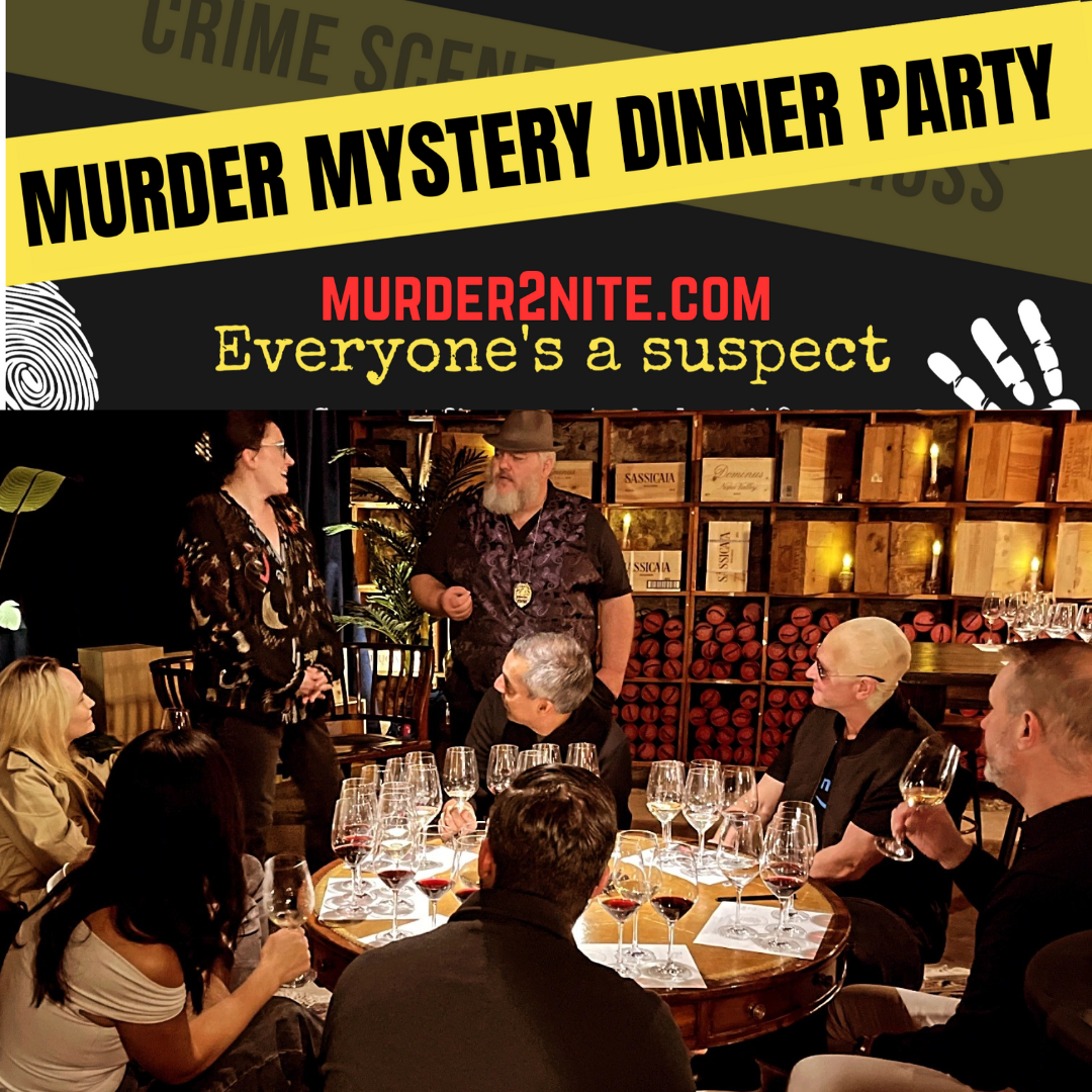 - FULL SHOW – Let our team make your team’s next event memorable with a fully immersive interactive murder mystery theatrical experience designed to engage everyone in the crowd with our odd ball characters, melodramic comedy, and true crime mystery solving. Four or more professional actors mix & mingle with your guests. But when someone in the crowd suddenly falls due to suspiscuous circumstances, everyone is a suspect, a witness and deputized detective.